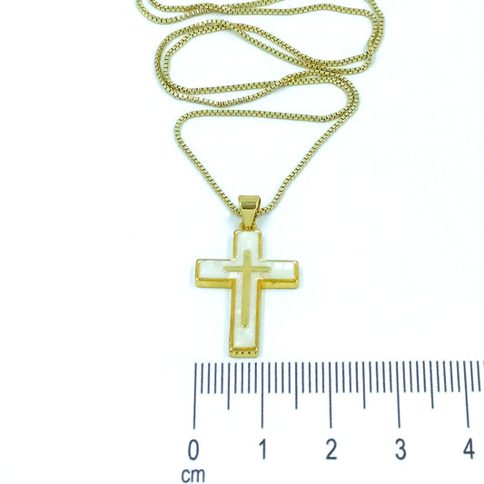 Collar rodio doble cruz nacar