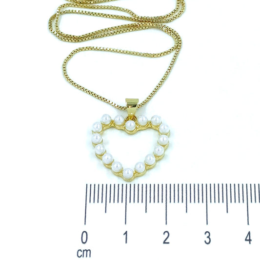 Collar rodio silueta corazon perlas
