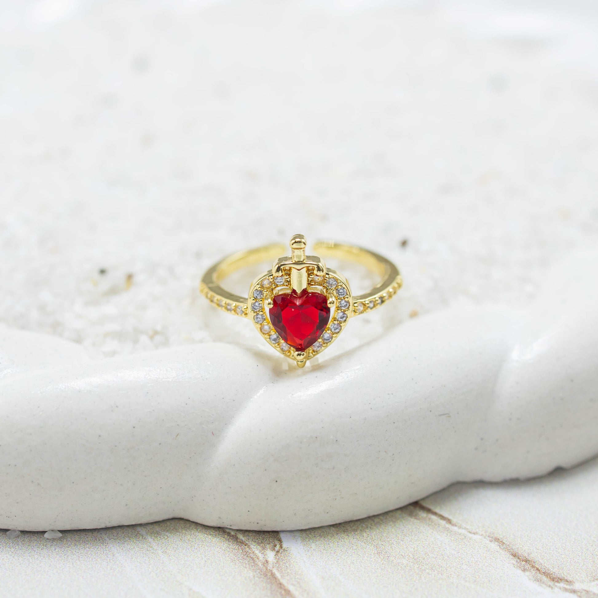 Anillo corazón zirçón rojo